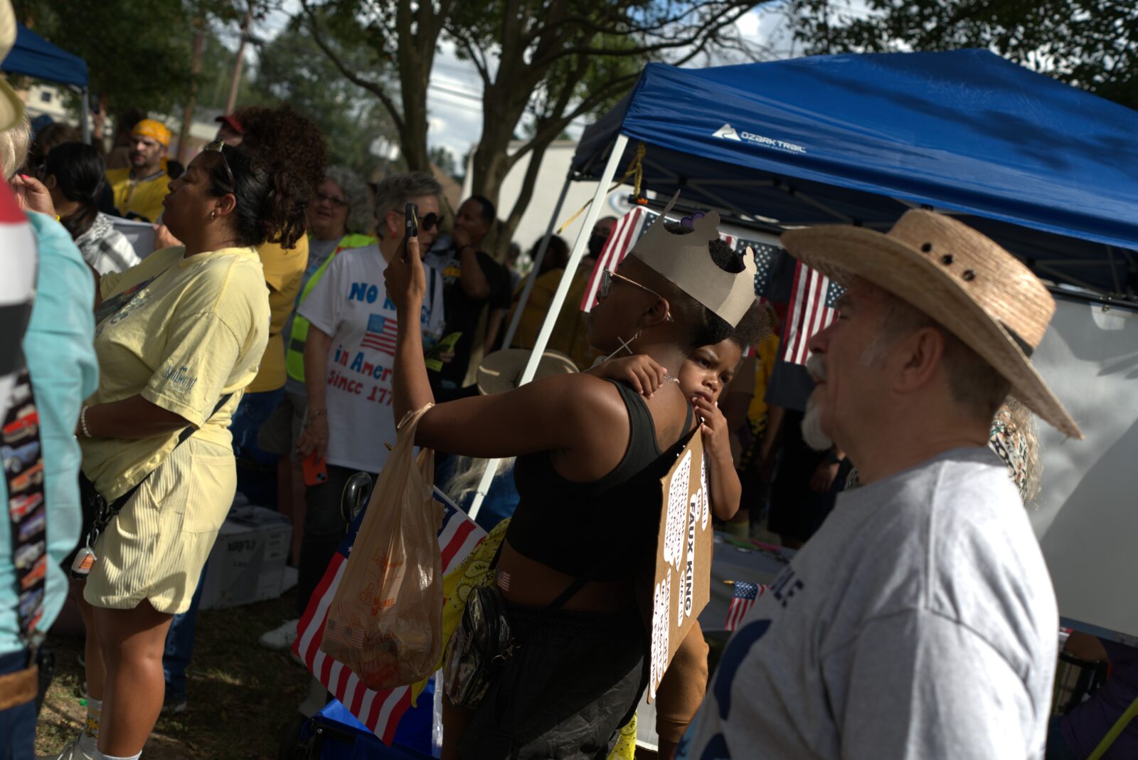 For Tarek Dalton, 26, the protest was personal. “Immigration rights,” he said when asked what brought him out. “I work with a lot of people who are migrants, and it hurts to see those people get attacked daily on the internet.” Dalton added, half-smiling, that what he most wanted to see was “Jeff Landry’s reaction. I know he’s squirming right now. I know he hates this.”