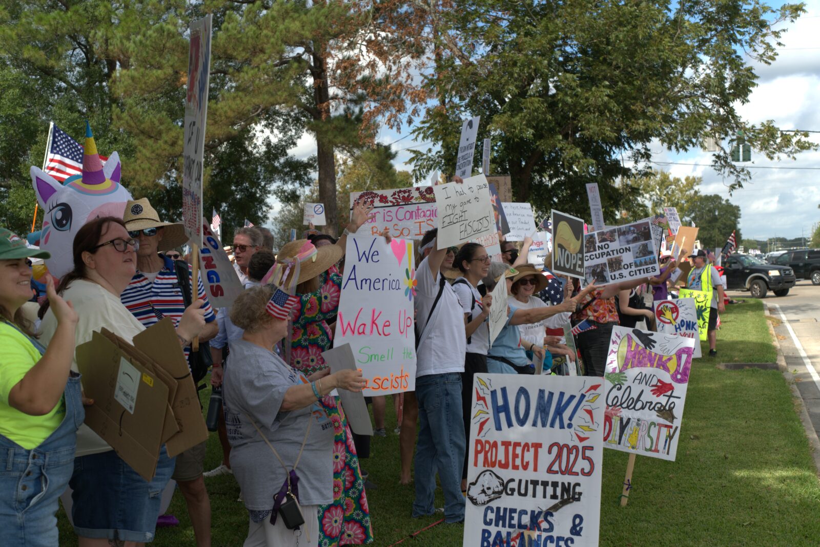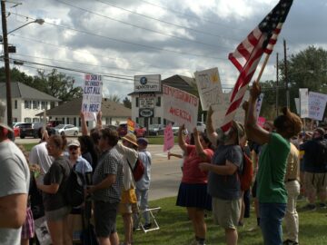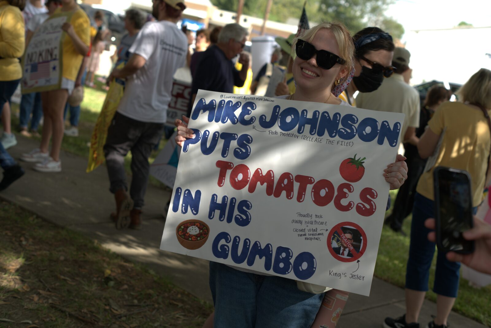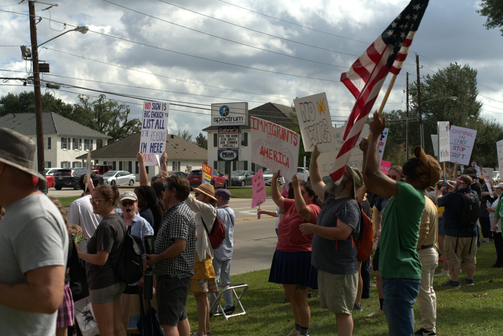 “We are disgusted with the way this country is going under an authoritarian president who thinks he’s a king, not a president,” said Jerel Giarrusso, a member of Indivisible Baton Rouge’s leadership team. “We’re also disgusted with Congress for letting him get away with it.”