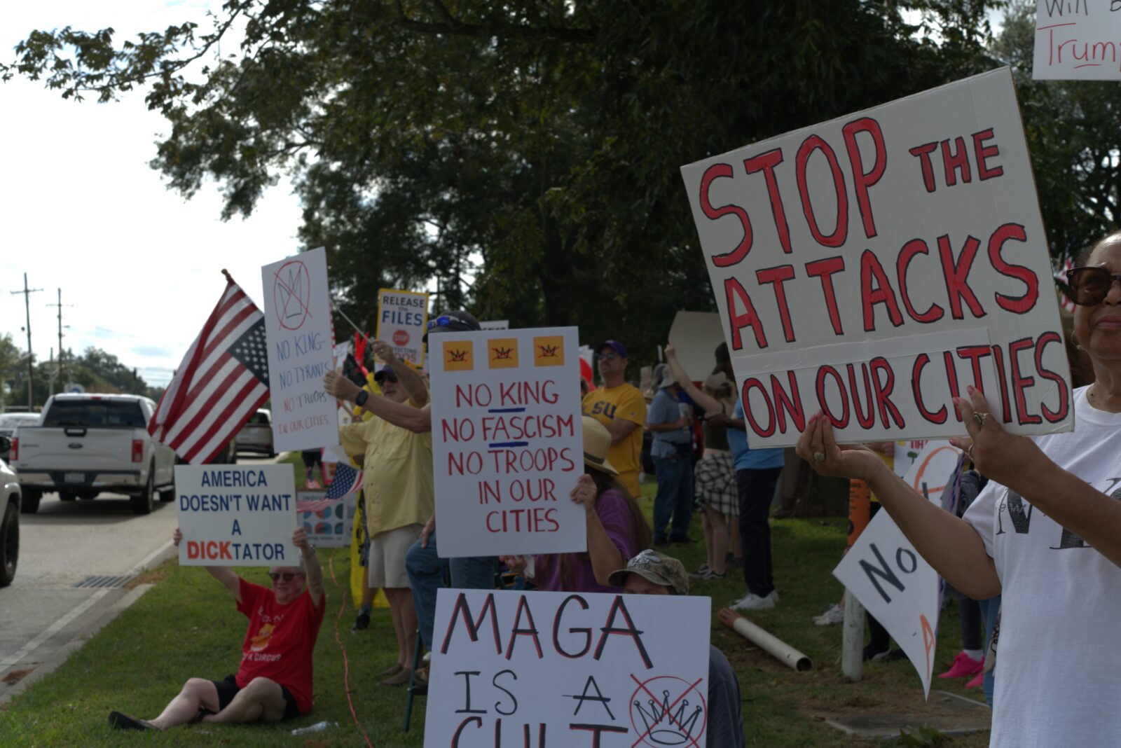 According to the No Kings Coalition, more than seven million people participated in demonstrations across the United States. In Louisiana, protests took place in ten cities, including Baton Rouge, Shreveport, Alexandria, New Orleans, Lafayette, Lake Charles, Leesville, Hammond, Ruston, and Monroe.