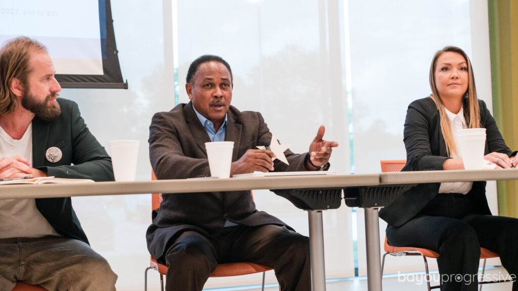 That same approach came through in his answer about the massive AI data center project in the Rayville area. Foy did not reject the project out of hand. He called it a “mixed bag.” Louisiana needs good-paying jobs, he said, but it does not need another version of the same old bargain, where corporations get tax breaks, politicians celebrate ribbon cuttings, and local communities are left with less than promised. “The community must be at the decision-making process,” Foy said, arguing for community benefit agreements and local hiring requirements early in negotiations, not as an afterthought. He pointed to the danger that the best jobs will once again go to workers brought in from outside the district while local residents are left with the talking points.