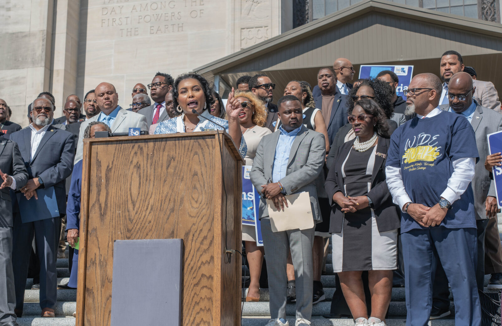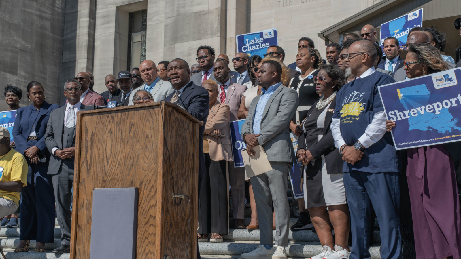 Representative Edmond Jordan, chair of the Louisiana Legislative Black Caucus, warned of what he called the “Trump Two-Step” — a strategy to delay elections and redraw districts behind closed doors. “Everything is at stake,” he said, pointing to the math that underpins the fight: a 33 percent Black population and yet a state legislature where Black representation barely cracks 20 percent.