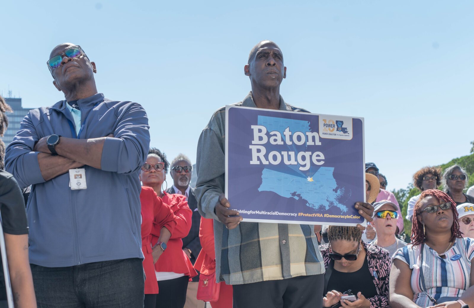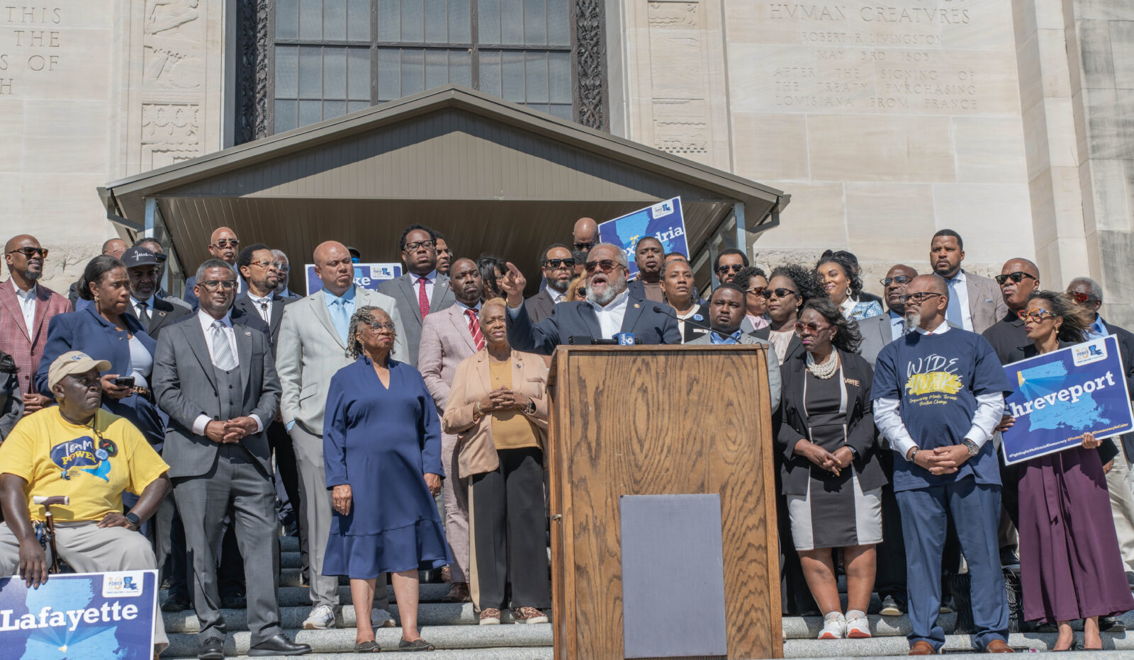 The mood turned defiant as Dr. Press Robinson, one of the plaintiffs whose name first appeared on the Robinson v. Landry lawsuit that led to this moment, took the microphone. “We will not let that happen,” he said of Governor Jeff Landry’s stated intent to redraw Louisiana into a 5-1 or 6-0 Republican map if the Supreme Court sides with the state.